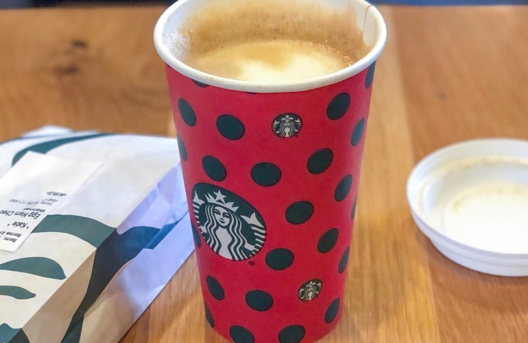Should you use a reusable cup. YES. I forgot mine today and was pleasantly surprised by the polka-dotted cup that was awaiting me for my mobile order.