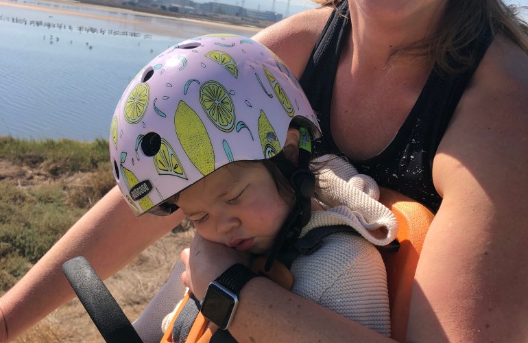 We reached Shoreline Lake, hopped out, and enjoyed a lakeside lunch. The kids ran around to shake off their bike legs, and then we strapped them in to head back home for naps. We were running a little behind nap schedule, and our daughter fell completely asleep after not even a mile of riding. I didn’t mind one bit having to bike home one-handed as she snoozed on my arm. With my husband and son behind me, and my sleeping daughter leading the way, there was no better way to have welcomed 39.