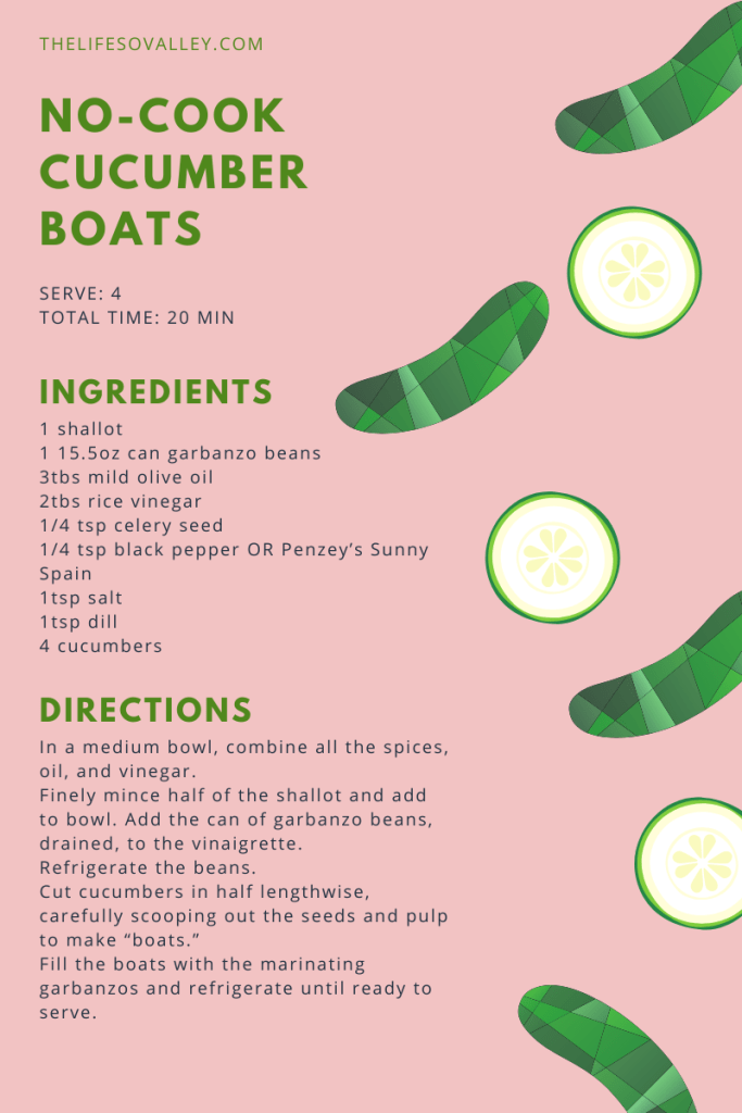 As much as I love to cook, this heat called for relatively something hands off, cold, and refreshing. I’ve also been spoiled by my neighbor’s cucumber harvest and wanted to make sure we had a good amount of protein, so enter my latest creation: No-Cook Cucumber Boats. (Jump to the recipes at the bottom of the post if you’re in a hurry!)